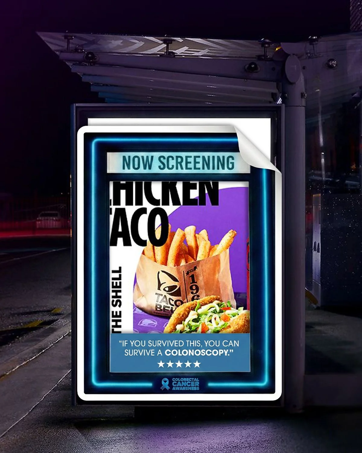 “Reminds People If You’ve Survived Gas Station Tacos, You Can Survive A Colonoscopy” - A gutsy new OOH campaign places cheeky cutouts over junk food ads to raise awareness for colon cancer screenings.