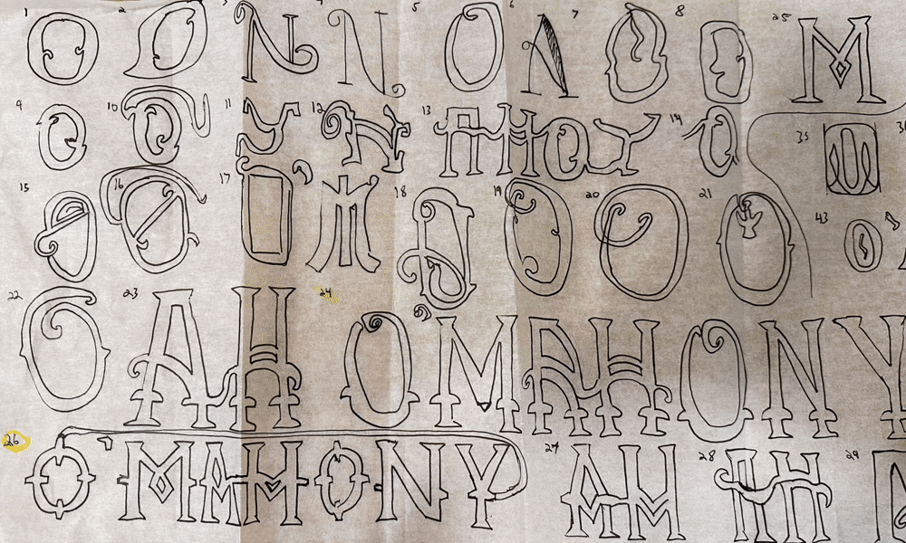 For my typography class, I created a liquor brand, “O’Mahony,” with a custom Victorian-style typeface inspired by a fictional backstory rooted in history. The label, printed on a fitting bottle, reflects the brand’s identity and launch strategy tied to a secret literary society.